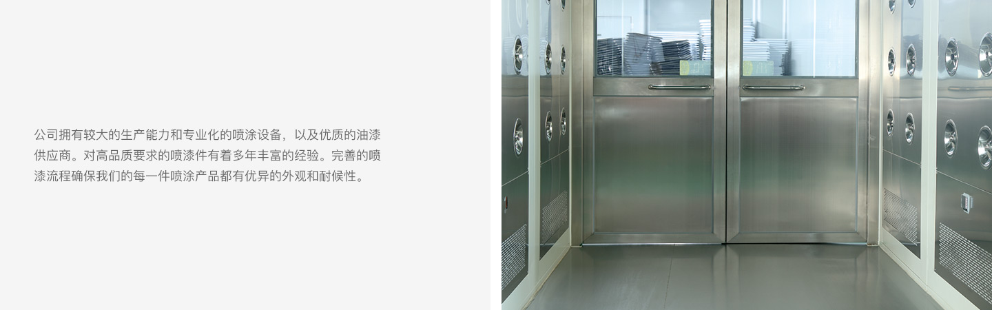 寧光公司嚴(yán)格控制產(chǎn)品的生產(chǎn)流程,每個環(huán)節(jié)都有專業(yè)人員跟蹤,確保有問題早發(fā)現(xiàn),早解決。我公司擁有較大的生產(chǎn)能力和專業(yè)化的噴涂設(shè)備,以及優(yōu)質(zhì)的油漆供應(yīng)商。對高品質(zhì)要求的噴漆件有著多年豐富的經(jīng)驗。完善的噴漆流程確保我們的每一件噴涂產(chǎn)品都有優(yōu)異的外觀和耐候性。